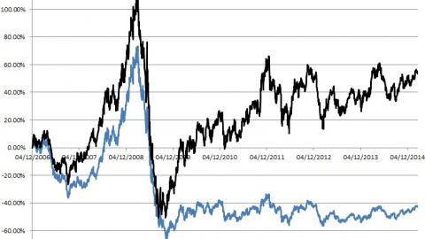 The Truth: Investors are bailing out of USO because its long-term performance is abysmal. As you can see in the chart above, the ETF has sorely underperformed the underlying commodity. The price of oil is represented by the black line while USO is represented by the blue. As of June of last year, USO had underperformed CL by nearly 100%. According to a study done by Yale University called "Facts and Fantasies about Commodity Futures", futures should outperform the underlying not underperform.